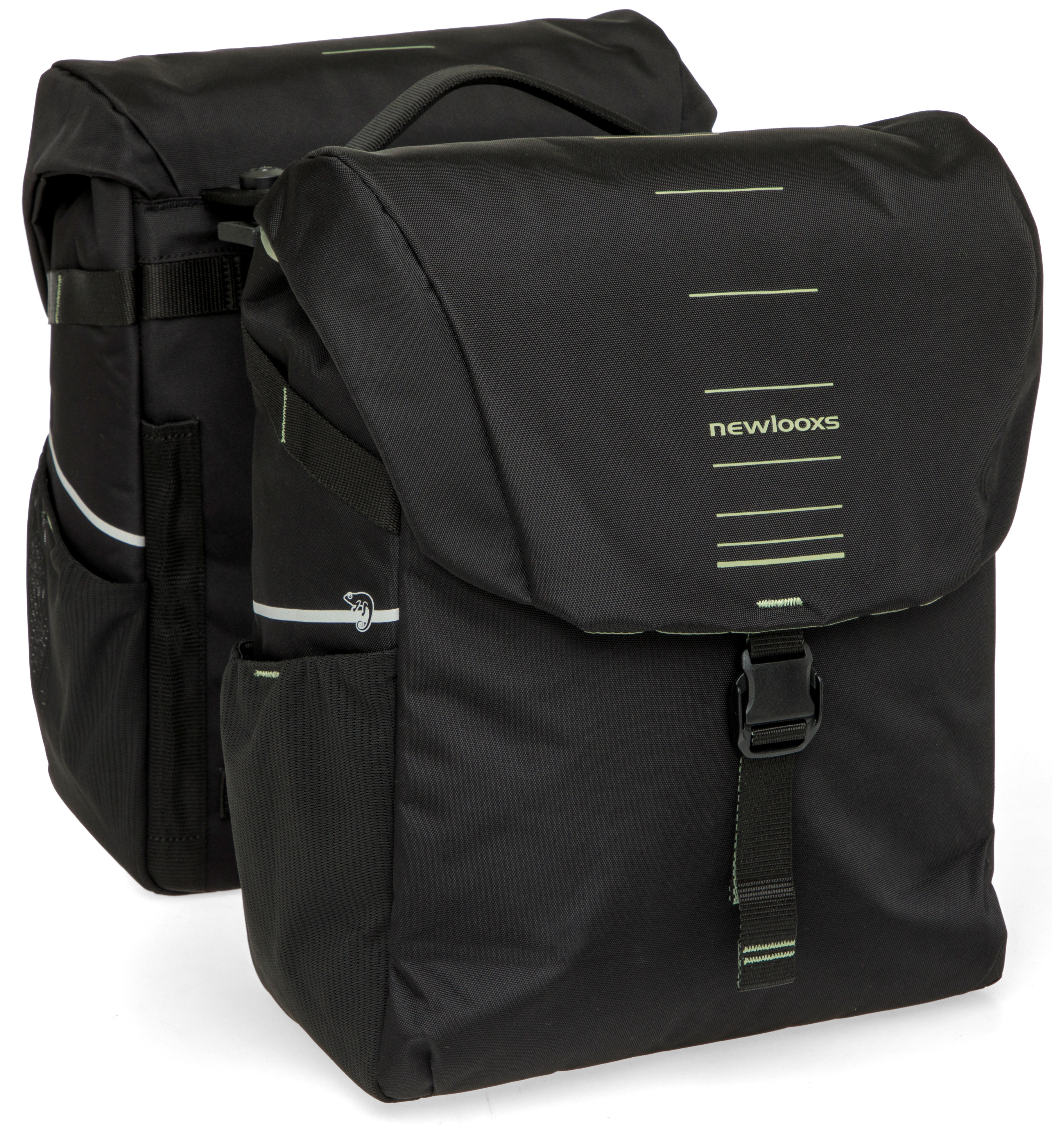 Die Vigo Double von New Looxs ist eine sportliche und funktionale doppelte Fahrradtasche, die für täglichen Gebrauch optimiert wurde. Mit einem Gesamtvolumen von 40 Litern und einer praktischen Größe von 30 x 19 x 40 cm ist sie ideal für Radfahrer, die viel unterwegs sind. Die frischen Farbakzente in Schwarz-Grün sorgen für eine ansprechende Optik, während die Tasche gleichzeitig robust und belastbar ist.