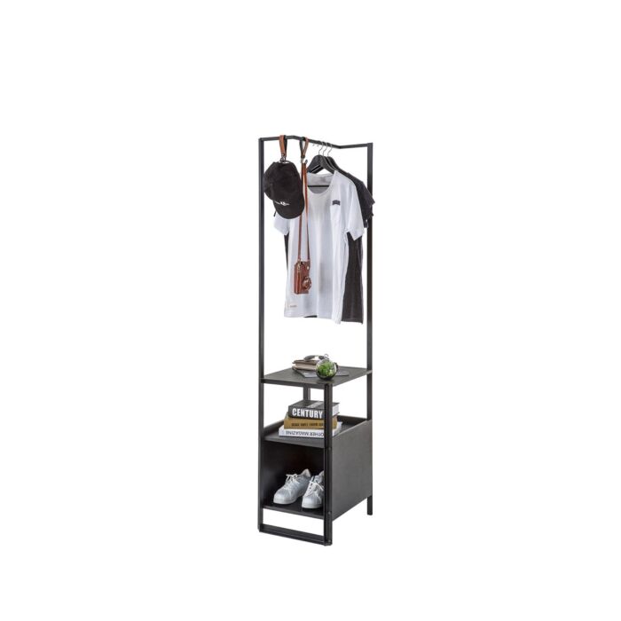 Die Cilec Kapstok met plank in der Dark Metal-Serie bringt praktische Eleganz in jedes Arbeits- oder Wohnzimmer. Dieses Möbelstück kombiniert raffinierte Gestaltung mit nützlicher Funktionalität und bietet platzsparende Aufbewahrung für Bücher, Schuhe und andere Alltagsgegenstände. Ideal, um Ordnung zu schaffen und gleichzeitig ein modernes Ambiente zu schaffen.