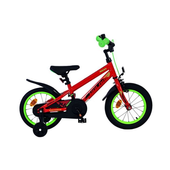 Für jedes Kind wird das Lernen des Radfahrens zu einem besonderen Erlebnis mit der Volare Rocky 14 Zoll Kinderfiets! Sicherheit hat oberste Priorität. Daher ist dieses beeindruckende Fahrrad mit einer Handbremse und Rücktrittbremse, einem geschlossenen Kettenkasten und abnehmbaren Stützrädern ausgestattet. Zusätzlich sorgt eine praktische Klingel dafür, dass das Fahren noch mehr Spaß macht. Komfort wurde ebenfalls großgeschrieben, denn das ansprechende rote Fahrrad mit grünen Akzenten verfügt über einen hochwertigen, weichen Sattel, ein robustes Rahmen-Design, das auch einiges aushält, und extra lange Schutzbleche, um Spritzwasser und Schmutz abzuwehren. Um die Lebensdauer des Fahrrads zu verlängern, gibt es eine verlängerte Sattelstütze, die es ermöglicht, dass das Fahrrad mit dem Wachstum des Kindes mithält. Das Fahrrad wird inklusive aller benötigten Montagematerialien geliefert!