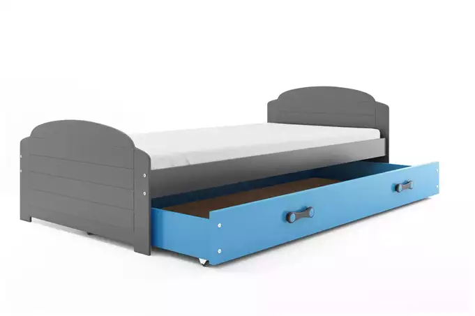 Das BMS LILI Jugendbett kombiniert stilvolles Design und funktionale Aspekte, um den Bedürfnissen junger Menschen gerecht zu werden. Mit den Maßen von 90x200 cm bietet es eine ideale Schlafgelegenheit für Kinder und Jugendliche. Der moderne Farbton Graphit mit blauen Akzenten sorgt dafür, dass dieses Bett in jedes Kinderzimmer passt.