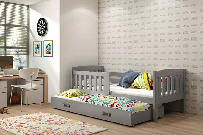 Entdecken Sie das praktische und stilvolle BMS KUBUŚ Pull-out Kinderbett mit den Maßen 80x160 cm, das ideal für Kinderzimmer geeignet ist. Dieses Bett besticht durch sein modernes Design in Grafit und bietet eine zusätzliche Schlafgelegenheit durch die integrierte Schublade. Es ist sowohl funktional als auch kinderfreundlich gestaltet, mit einem Fokus auf Sicherheit und Komfort.