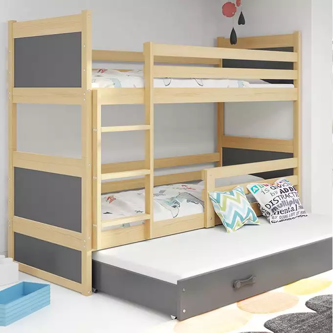 BMS RICO | Jugendbett für drei Personen | 90x200 cm | Kiefer/Graphit
