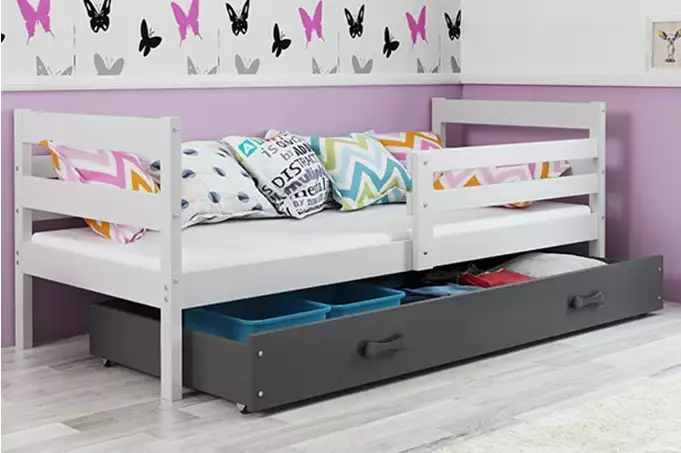 BMS | Jugendbett ERYK | 80x190 cm mit Schublade, Weiß/Grafit