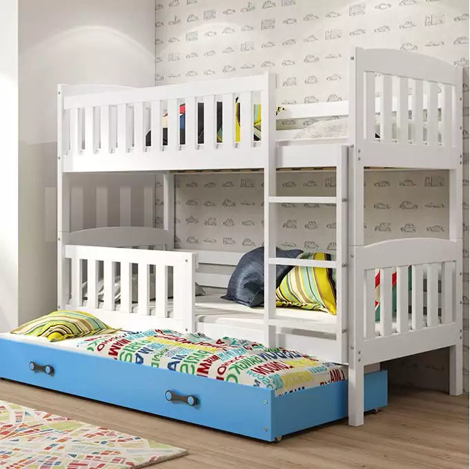 BMS | KUBUŚ Triple Jugendbett | 90x200 mit Matratze und Schublade, Weiß/Blau