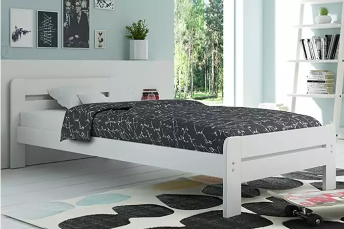 - Bettgestell - aus Kiefernholz, mit wasserbasierter Lackierung.