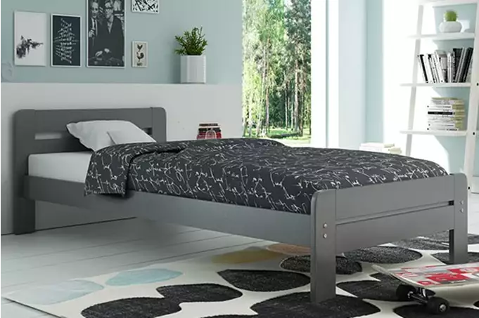 - Bettgestell - aus Kiefernholz, mit wasserbasiertem Lack beschichtet.