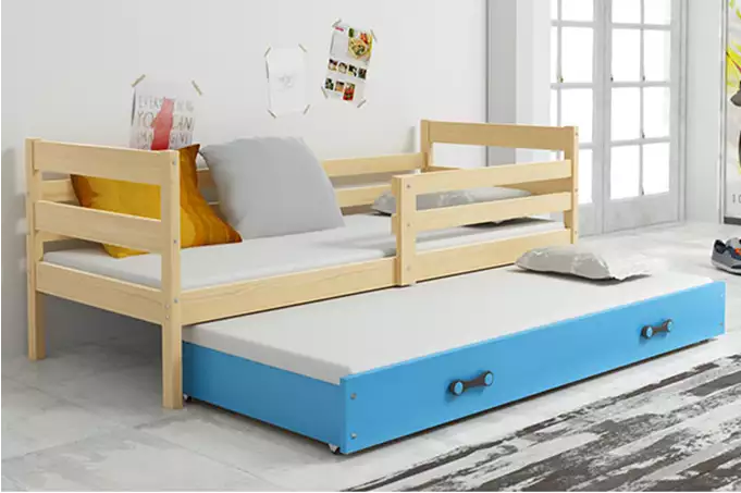 Das BMS ERYK 90x200 Pull-Out Jugendbett ist die ideale Lösung für moderne Jungen- und Mädchenzimmer. Es bietet dank seines Ausziehmechanismus und der zusätzlichen Schublade eine schnelle und unkomplizierte Schlafgelegenheit für Übernachtungsgäste. Die elegante Kombination aus Kiefernholz in blauer Lackierung sorgt für ein kinderfreundliches und ansprechendes Design.