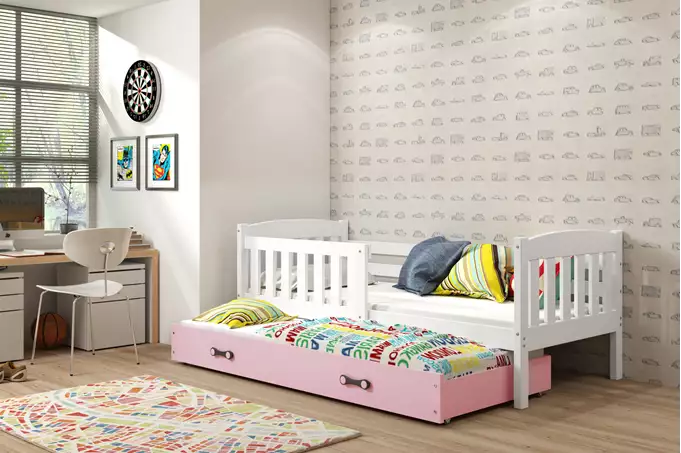 Das BMS KUBUŚ erweiterbare Jugendbett vereint Funktionalität und modernes Design. Mit den Abmessungen von 90x190 cm bietet es nicht nur eine stilvolle Schlafgelegenheit, sondern auch eine praktische Schublade für zusätzlichen Stauraum oder eine Schlafmöglichkeit. Das Bettgestell, gefertigt aus hochwertigem Kiefernholz und mit einer wasserbasierten Lackierung versehen, sorgt für eine umweltfreundliche und sichere Nutzung, die zudem den TUV-Standards entspricht.