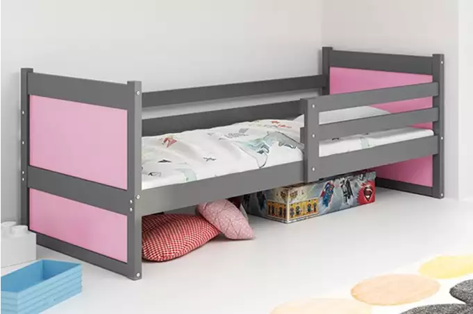 BMS RICO | Jugendbett | 90x200 cm | Graphit/Rosa | TÜV-zertifiziert
