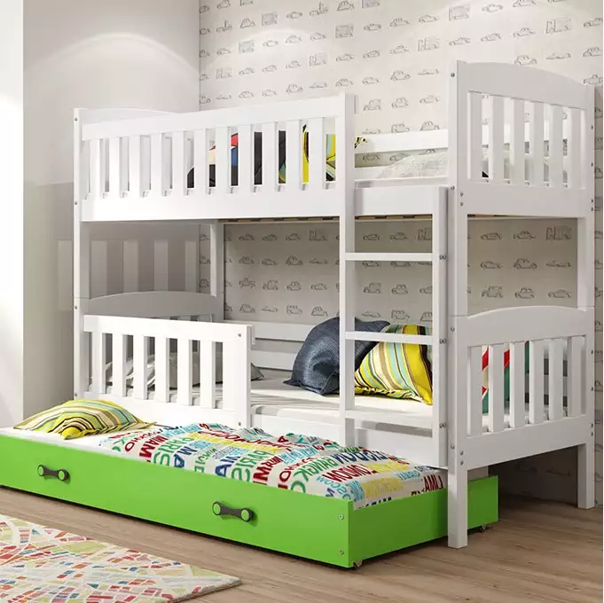 BMS | Jugendbett | Weiß/Grün, 90x190 cm, mit Schublade
