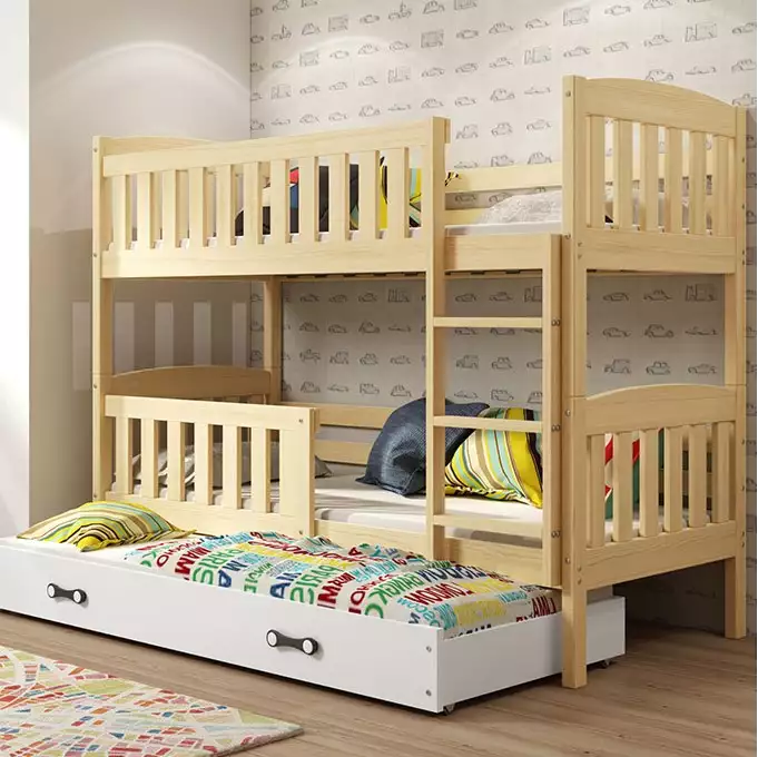 BMS | Jugendbett | 3-Personen | 90x200 cm | Kiefer/Weiß