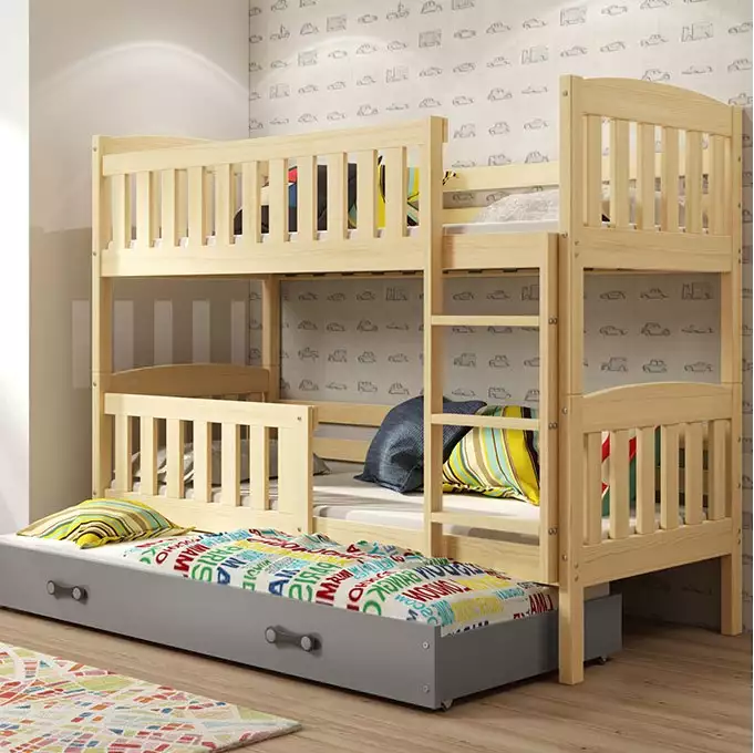 BMS | Jugendbett KUBUŚ Triple | 90x200 cm mit Schublade, Kiefer/Graphit