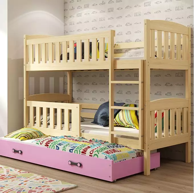 BMS KUBUŚ | Jugendbett für 3 Personen | 90x190 cm | Kiefer/Pink mit Schublade