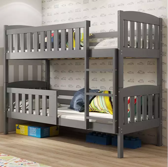Das BMS Hochbett mit den Abmessungen 90x200 cm in Graphit überzeugt durch modernes Design und hochwertige Materialien. Es bietet eine sichere und komfortable Schlafgelegenheit für Kinder und Jugendliche. Das Bettgestell ist aus Kiefernholz gefertigt und mit einer umweltfreundlichen, wasserbasierten Lackierung versehen, die sowohl robust als auch ästhetisch ansprechend ist.