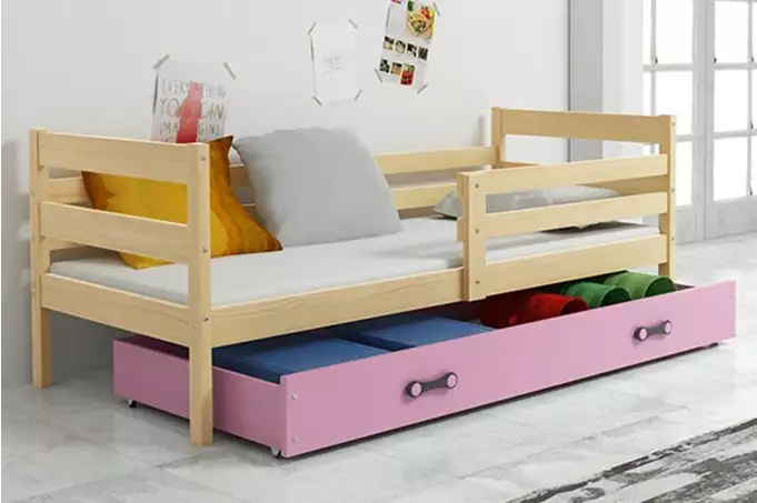 BMS | Jugendbett ERYK | 80x190 cm | Kiefer/Pink mit Schublade