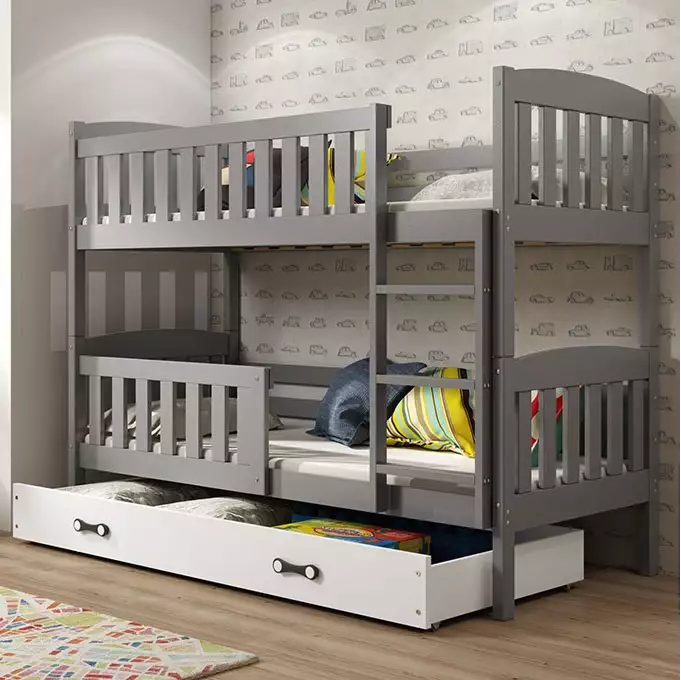 BMS KUBUŚ | Jugendbett | 90x200 cm mit Schublade in Graphit/Weiß