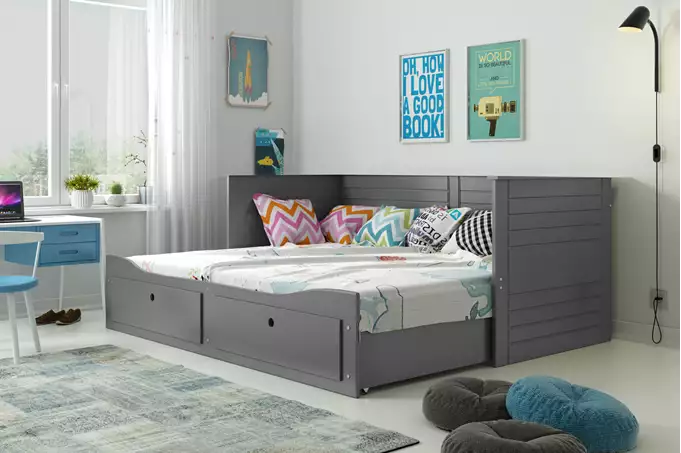 BMS | Jugendbett | 80x200 cm | Graphit | Ausziehbar mit Schublade