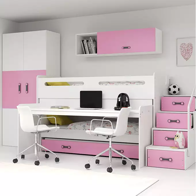 BMS MAX 1 Triple Youth Bed | 80x200 cm | Pink | Inklusive Schreibtisch