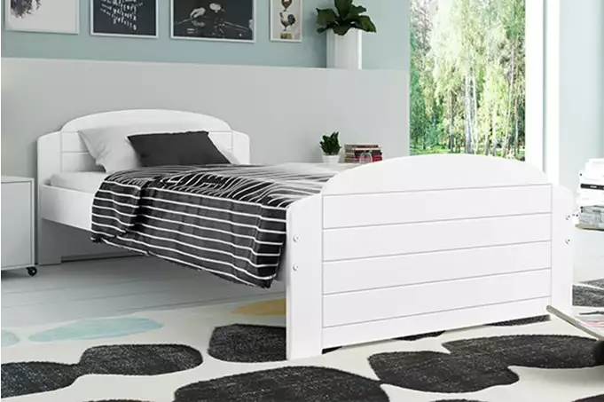 Das Einzelbett misst 90x200 cm und bietet ausreichend Platz für eine angenehme Nachtruhe. Der Rahmen besteht aus stabilen Kiefernholz und das gesamte Material ist mit einem wasserbasierten Lack behandelt, was eine hohe Widerstandsfähigkeit und Langlebigkeit garantiert. Die Matratze hat eine Dicke von 7 cm und besteht aus einem Kombination von Klimafaser und Polyurethan-Schaum, die für optimalen Liegekomfort sorgt.