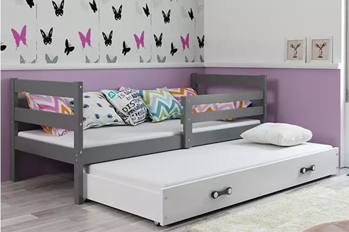 Das innovative Design des BMS ERYK Etagenbettes bietet eine praktische Schublade zur Aufbewahrung von Bettwäsche oder anderen Gegenständen. Mit einem maximalen Gewicht von 100 kg pro Ebene ist das Bett für Kinder und Jugendliche gleichermaßen geeignet. Die schlichten Linien und die moderne Farbkombination machen das Bett zu einem stilvollen Möbelstück in jedem Kinderzimmer.