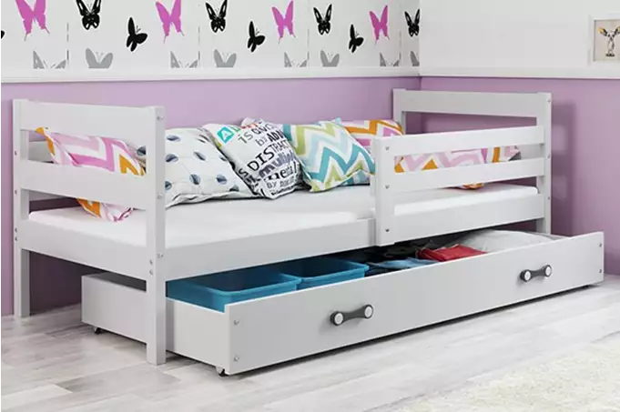 Das BMS Einzelbett ERYK ist ideal für Kinder und Jugendliche, die einen ruhigen und sicheren Schlafplatz benötigen. Die praktische Schublade bietet zusätzlichen Platz für Bettwäsche oder Spielzeug, was es perfekt für kleine Räume macht. Dieses Bett vereint Komfort und Stil und ist eine ausgezeichnete Wahl für jedes Kinder-/Jugendzimmer.