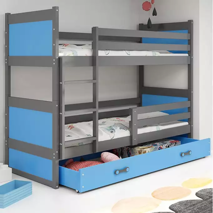 BMS | Hochbett | 90x200 cm | Graphit / Blau mit Matratze und Schublade