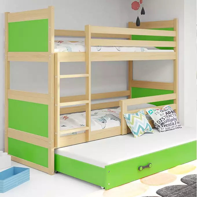 Das BMS RICO Triple Jugendbett kombiniert Funktionalität und Komfort in einem stilvollen Design. Das Bettgestell besteht aus hochwertigem Kiefernholz und bietet ein solides Fundament für erholsame Nächte. Mit innovativen Matratzen und einer cleveren Schublade ist dieses Bett ideal für jedes Kinderzimmer.