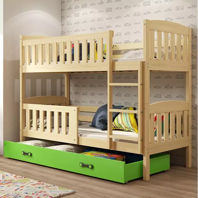 BMS KUBUŚ | Jugend Etagenbett | 90x190 cm mit Matratzen und Schublade | Kieferngrün