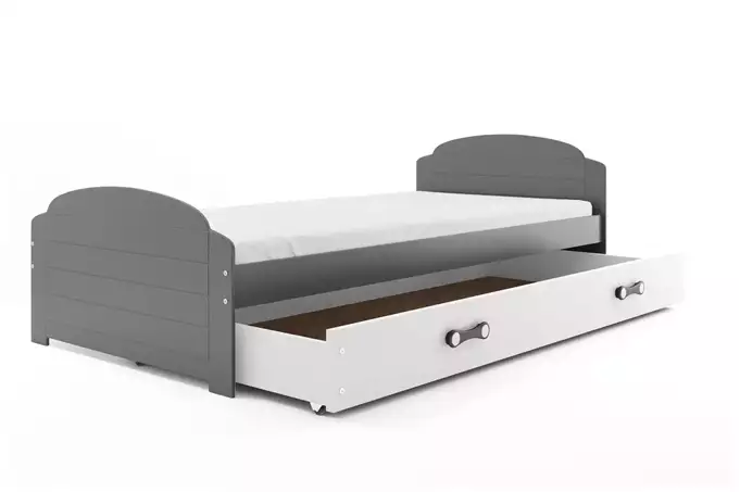 Das BMS LILI Bett zeichnet sich durch eine innovative Lattenkonstruktion aus Birkenholz aus, die mit einem praktischen Click-Clack-System montiert ist. Dies ermöglicht eine einfache und schnelle Montage. Die Schublade bietet zusätzlichen Stauraum und ist mit robusten PVC-Rädern ausgestattet, die eine mühelose Handhabung ermöglichen. Die abgerundeten Kanten sorgen für Sicherheit und ein ansprechendes Design.