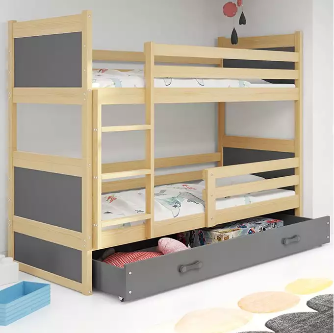 Ideal für Kinder- und Jugendzimmer, bietet das Loftbett genügend Platz für einen erholsamen Schlaf. Dank der robusten Bauweise und der hohen Belastbarkeit von 100 kg pro Ebene eignet es sich sowohl für Kinder als auch für Jugendliche. Das schlichte Design fügt sich harmonisch in verschiedene Einrichtungsstile ein.