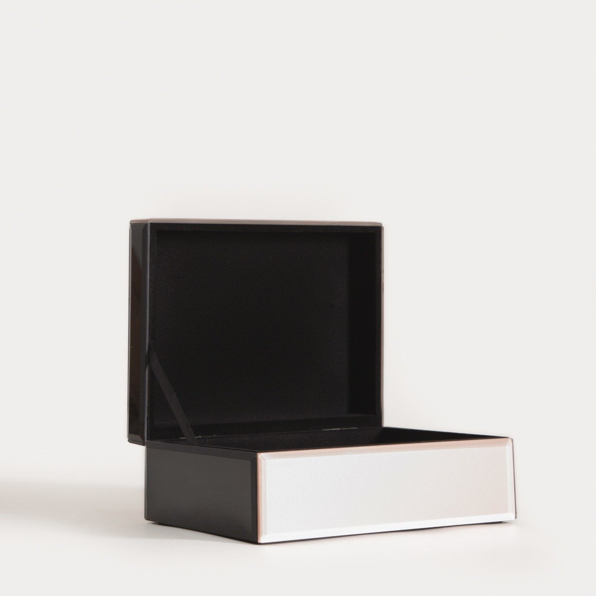 Die Schmuckbox ist aus hochwertigen Materialien gefertigt und besitzt die Abmessungen von 19 cm in der Länge, 15 cm in der Breite und 8 cm in der Höhe. Die Verwendung von Spiegeloberflächen verleiht der Box einen luxuriösen Look und lässt sie in jedem Raum elegant wirken.