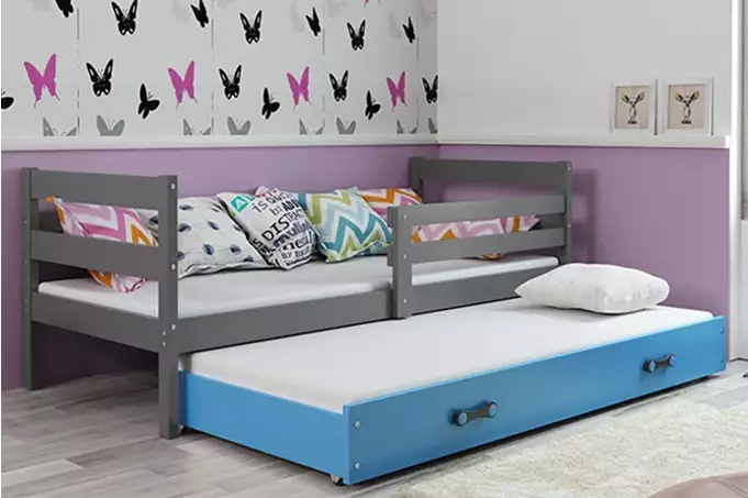 BMS ERYK | Jugendbett | 80x190 cm mit Matratze und Schublade, Graphit/Blau