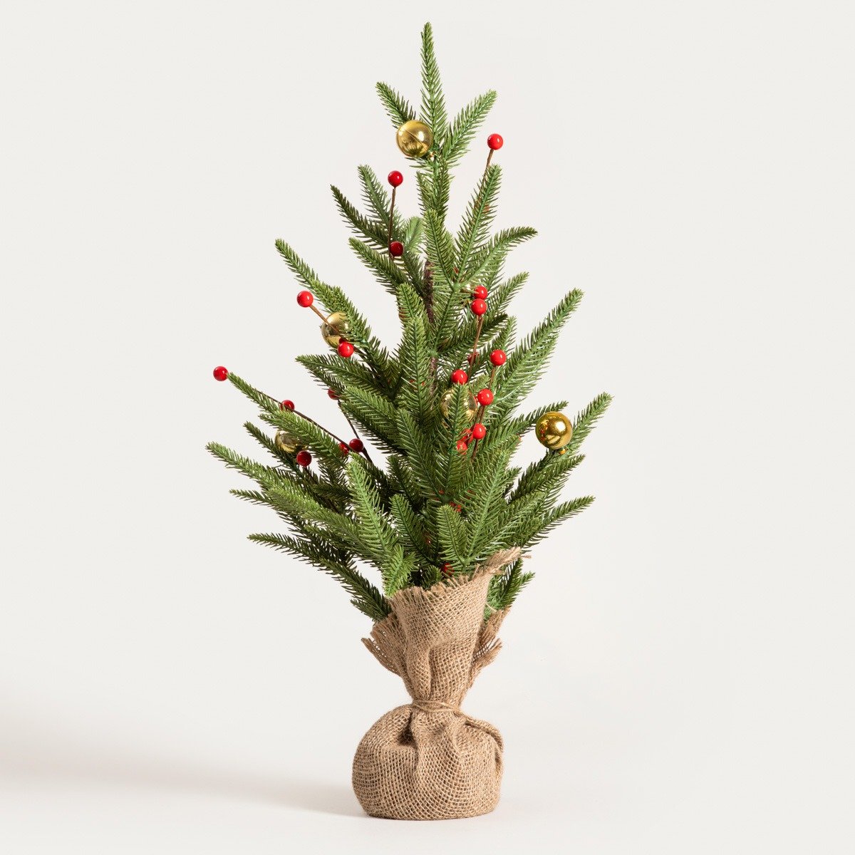 HOMLA | Weihnachtsbaum | STINA | grün mit Jute und goldenen sowie roten Kugeln