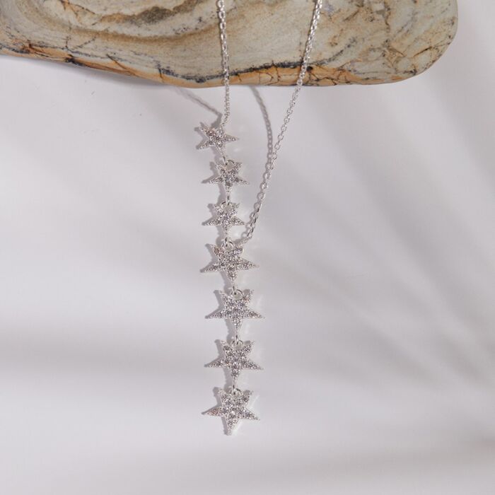 Die silberne Farbe dieser Kette verleiht jedem Outfit eine Prise Eleganz, wodurch sie ein vielseitiges Accessoire für sowohl alltägliche als auch formelle Anlässe ist. Ob Sie an einem glamourösen Event teilnehmen oder einfach Ihren täglichen Verpflichtungen nachgehen, diese Halskette wird Ihren Stil mühelos aufwerten und ein Statement setzen.