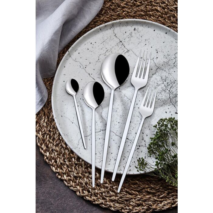 - Inklusive 6 Tafellöffel, 6 Tafelgabeln, 6 Dessertlöffel, 6 Dessertgabeln, 6 Teelöffel