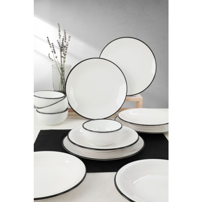 Asir | Keramisches Geschirrset | 12-teilig weiß 26 x 26 x 3,7 cm