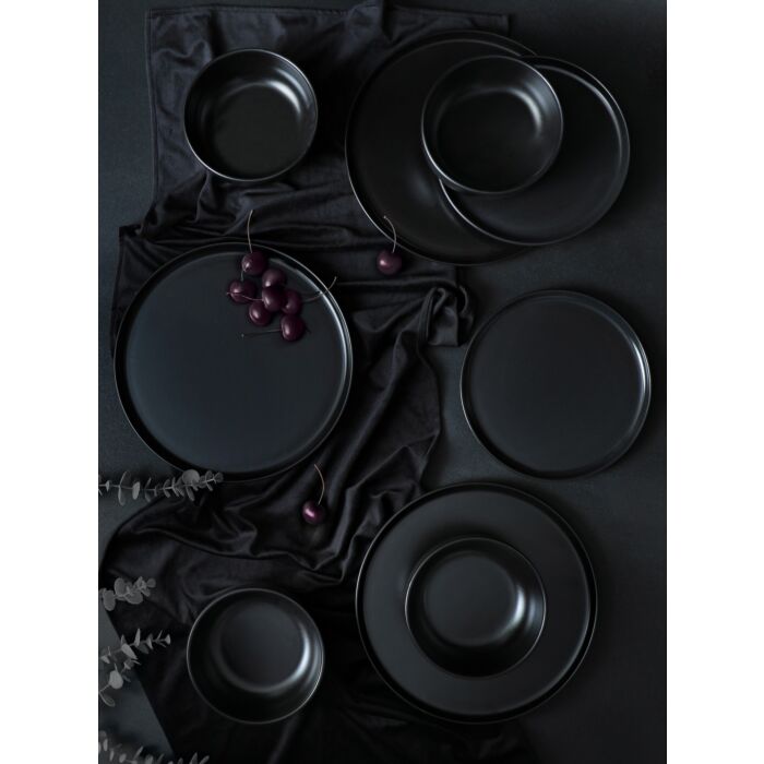 Asir | Keramisch Geschirrset | 18-teilig | Schwarz | 28 x 28 cm