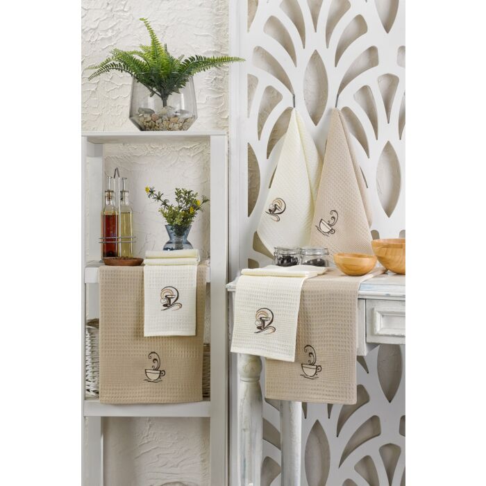 Verleihen Sie Ihrer Küche mit unserem luxuriösen Küchenhandtuchset ein einladendes Ambiente. Diese Tücher bestehen aus 100% Baumwolle, sind nicht nur weich und saugfähig, sondern auch langlebig und halten viel aus. Das aufwendige Stickerei-Design bringt eine Note von Eleganz und Raffinesse in Ihre Kücheneinrichtung und ist somit eine perfekte Ergänzung für jedes Zuhause.