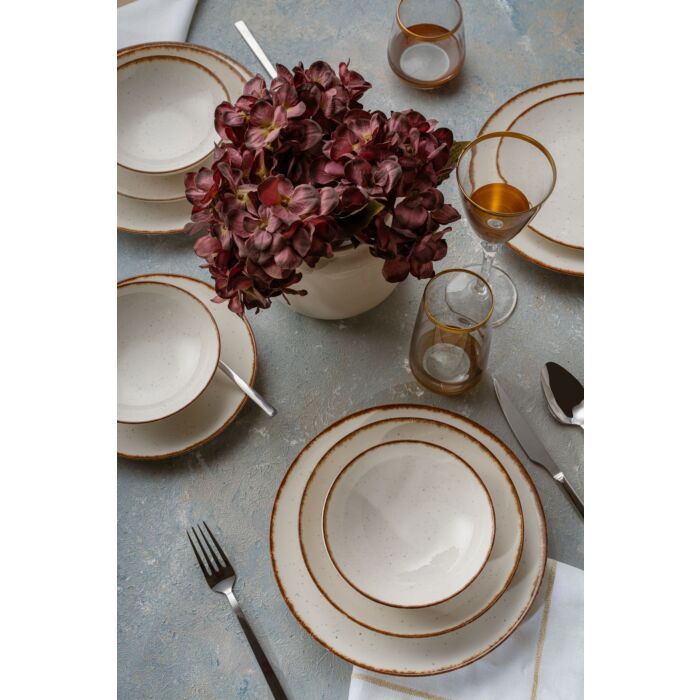 Das klare, moderne Design dieser Dinerserie hebt sich durch die hochwertige Porzellanverarbeitung ab. Jedes Stück wurde mit Blick auf die Ästhetik gefertigt, sodass es nicht nur funktional, sondern auch visuell ansprechend ist. Die Struktur der Teile ermöglicht eine einfache Handhabung und erleichtert das Servieren von Speisen.