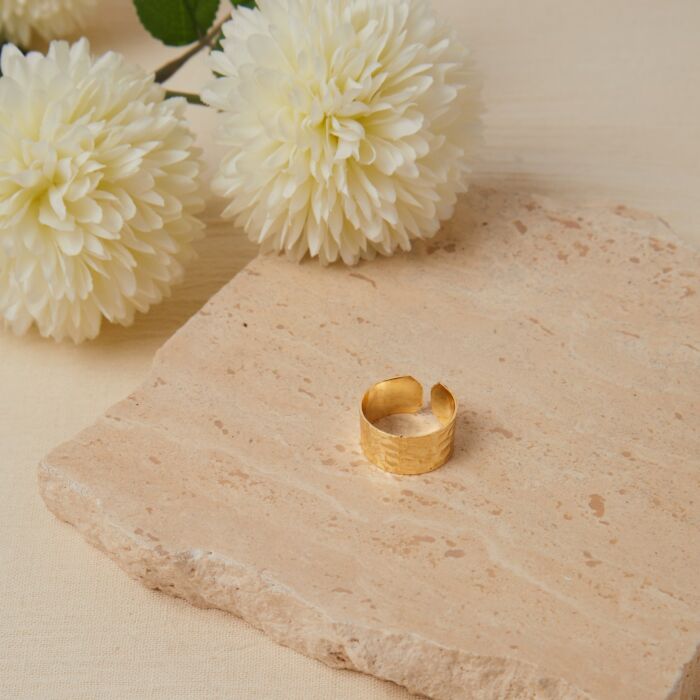 Het ontwerp van deze ring combineert eenvoud met elegantie. De gouden kleur voegt niet alleen een luxe uitstraling toe, maar maakt het ook geschikt voor diverse gelegenheden, of je nu een avondje uitgaat of een casual brunch hebt.