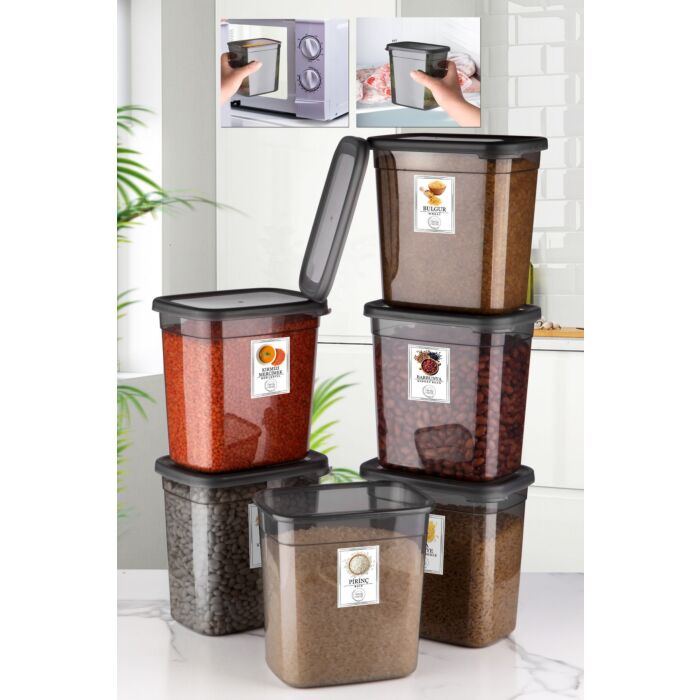 Asir | Opbergdoosset | 6 Stück, Antraciet, BPA-frei, 2000 ml