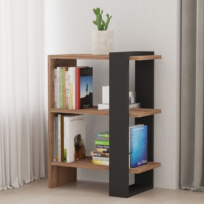 Die Bücherwand hat die Maße 51,8 x 25 x 70 cm und besteht aus 100% melaminbeschichtetem Spanplatten mit einer Dicke von 18 mm, was für Stabilität und Langlebigkeit sorgt. Die Kombination aus Eiche und Antrazit verleiht dem Regal einen modernen und eleganten Look.