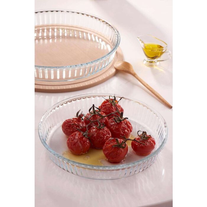 De schalen hebben een afmeting van 32 x 32 x 5 cm en 26 x 26 x 4,5 cm. Beide schalen zijn vervaardigd uit hoge kwaliteit Boro Silicaatglas, dat bekend staat om zijn uitstekende hitte- en koudevastend vermogen. Dit maakt ze ideaal voor gebruik in verschillende keukens en restaurants.