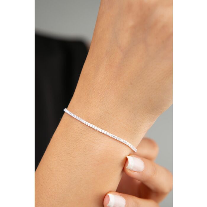 Met een gewicht van slechts 2,97 gram voelt deze armband licht aan, waardoor je hem de hele dag comfortabel kunt dragen. Het strakke ontwerp en de gladde afwerking maken het een veelzijdig accessoire dat perfect te combineren is met elke outfit. De armband is versierd met een schitterende zirkoonsteen die een betoverende glans toevoegt en het licht vangt, wat zorgt voor een stralende uitstraling.