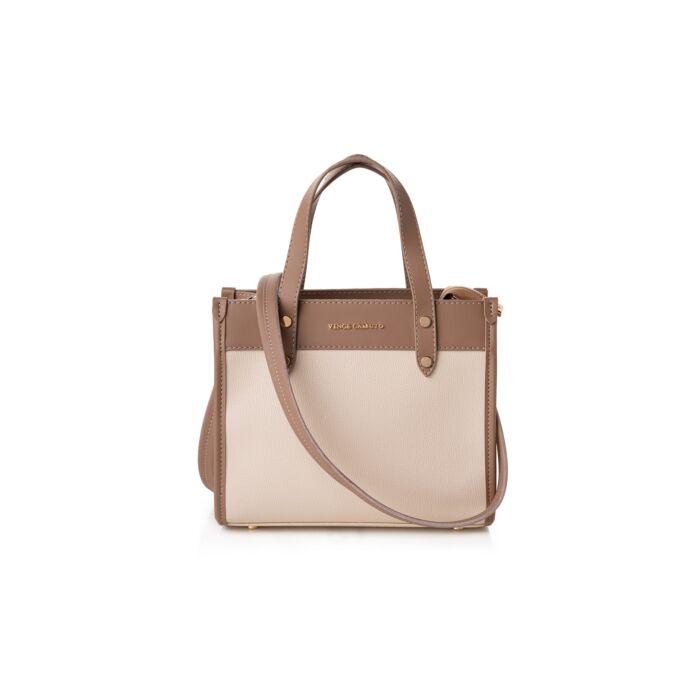Die Tote-Bag misst 25 cm in der Länge, 12 cm in der Breite und 20 cm in der Höhe. Sie ist aus 100% Polyvinylleder gefertigt, das sowohl langlebig als auch pflegeleicht ist. Die Kombination aus Creme und Nerts verleiht der Tasche einen eleganten Look, der zu verschiedenen Outfits passt.