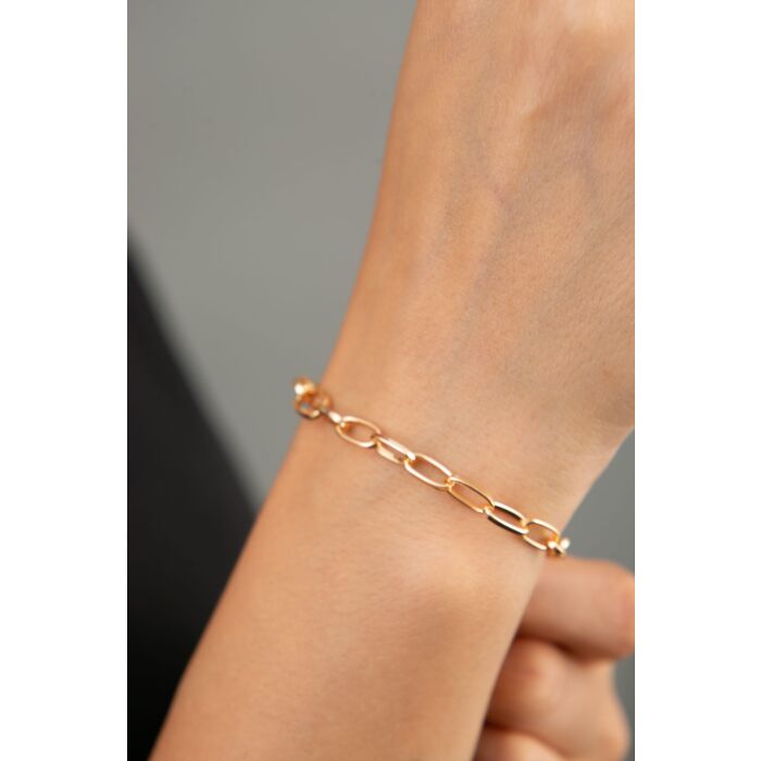Deze Metalen Armband heeft een fijn, slank ontwerp dat elegantie uitstraalt. De gouden kleur voegt luxe toe aan het geheel en maakt het een veelzijdig stuk dat zowel casual als formele outfits kan aanvullen. De hoogglanzende afwerking reflecteert licht op een mooie manier, waardoor de armband een opvallend accessoire wordt.