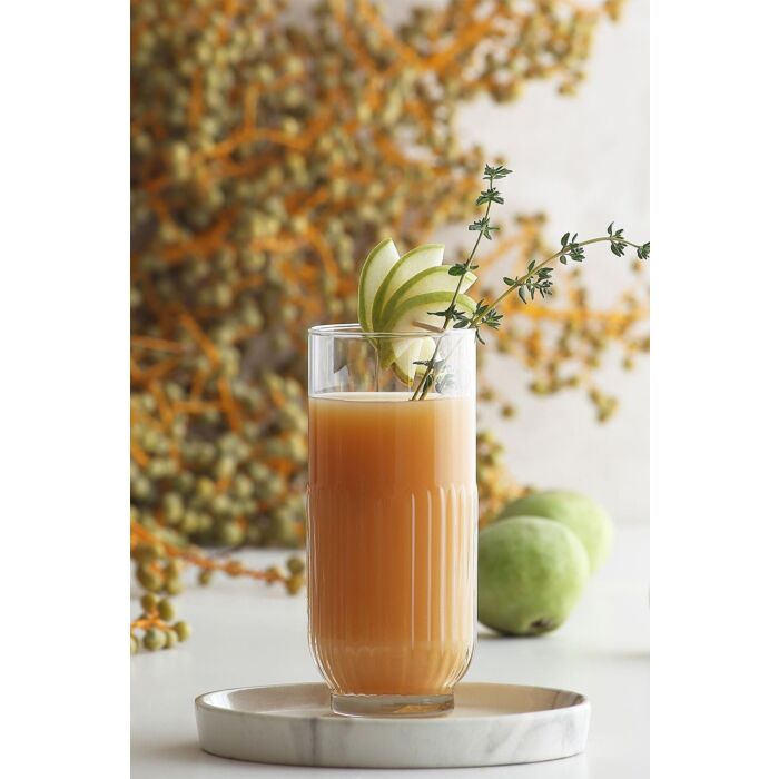 Jedes dieser eleganten Gläser misst 6,5 x 6,5 x 15 cm und hat eine Füllmenge von 395 cc. Sie bestehen ausschließlich aus 100% hochwertigem Glas, was ihnen ein ansprechendes Aussehen und eine exzellente Langlebigkeit verleiht. Diese Gläser sind perfekt für die Präsentation Ihrer Lieblingsgetränke und fügen sich harmonisch in jede Tischgestaltung ein.
