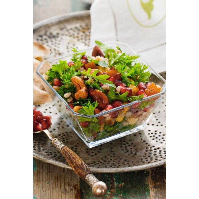Die Schale hat die Maße von 19,6 x 19,6 x 10,4 cm und bietet ausreichend Platz für Ihre Lieblingssalate oder andere Gerichte. Hergestellt aus 100% hochwertigem Glas, vereint sie Schönheit und Funktionalität, und das transparente Design lässt die Farben und Texturen Ihrer Speisen strahlen.