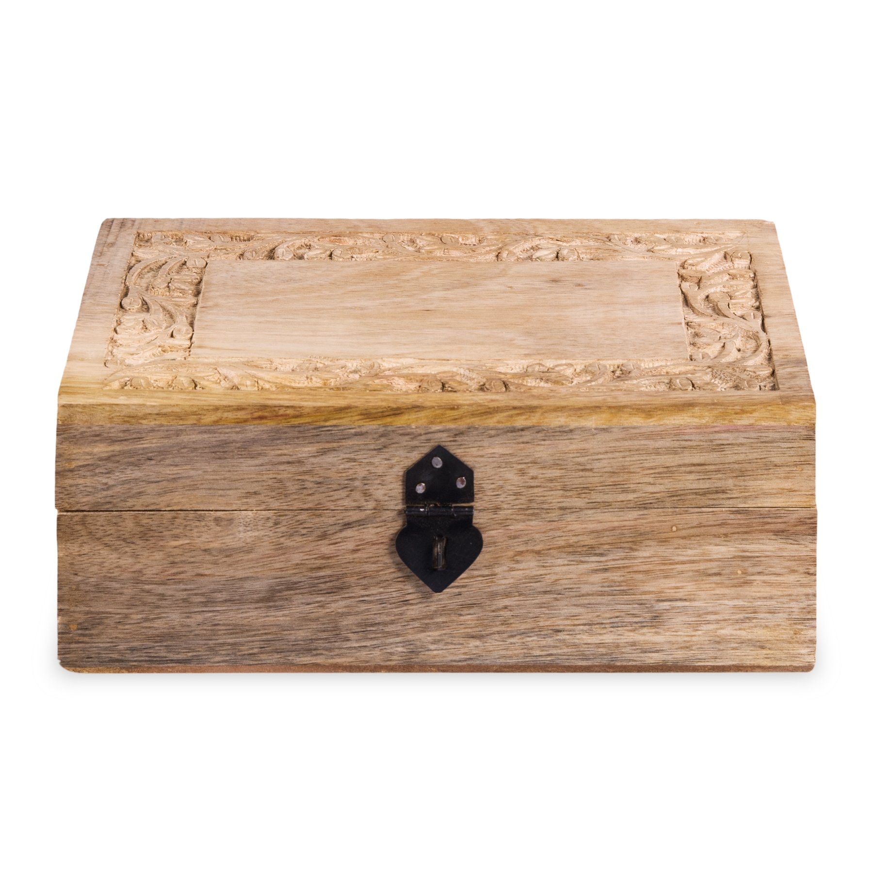 Das ansprechende Design der Holzschatulle SOMBRE zeichnet sich durch kunstvolle Reliefs in Form von blattartigen Ranken aus. Der elegante metallische Griff sorgt nicht nur für ästhetische Freude, sondern ermöglicht auch ein einfaches Öffnen der Box. Dies macht die Schmuckkästchen zu einem idealen Geschenk für besondere Anlässe.