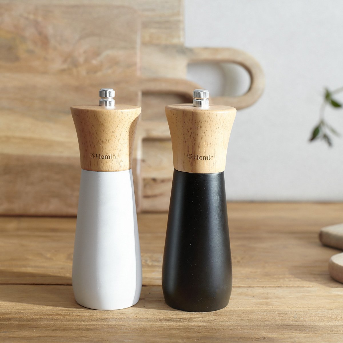 Das RUBBY Mühlenset in Schwarz und Weiß von HOMLA ist ein unverzichtbares Küchenaccessoire, das Frische und Stil in Ihre Küche bringt. Diese beiden Mühlen sind nicht nur funktional, sondern auch eine stilvolle Ergänzung, die perfekt zu minimalistischen, industriellen oder skandinavischen Küchendesigns passt.